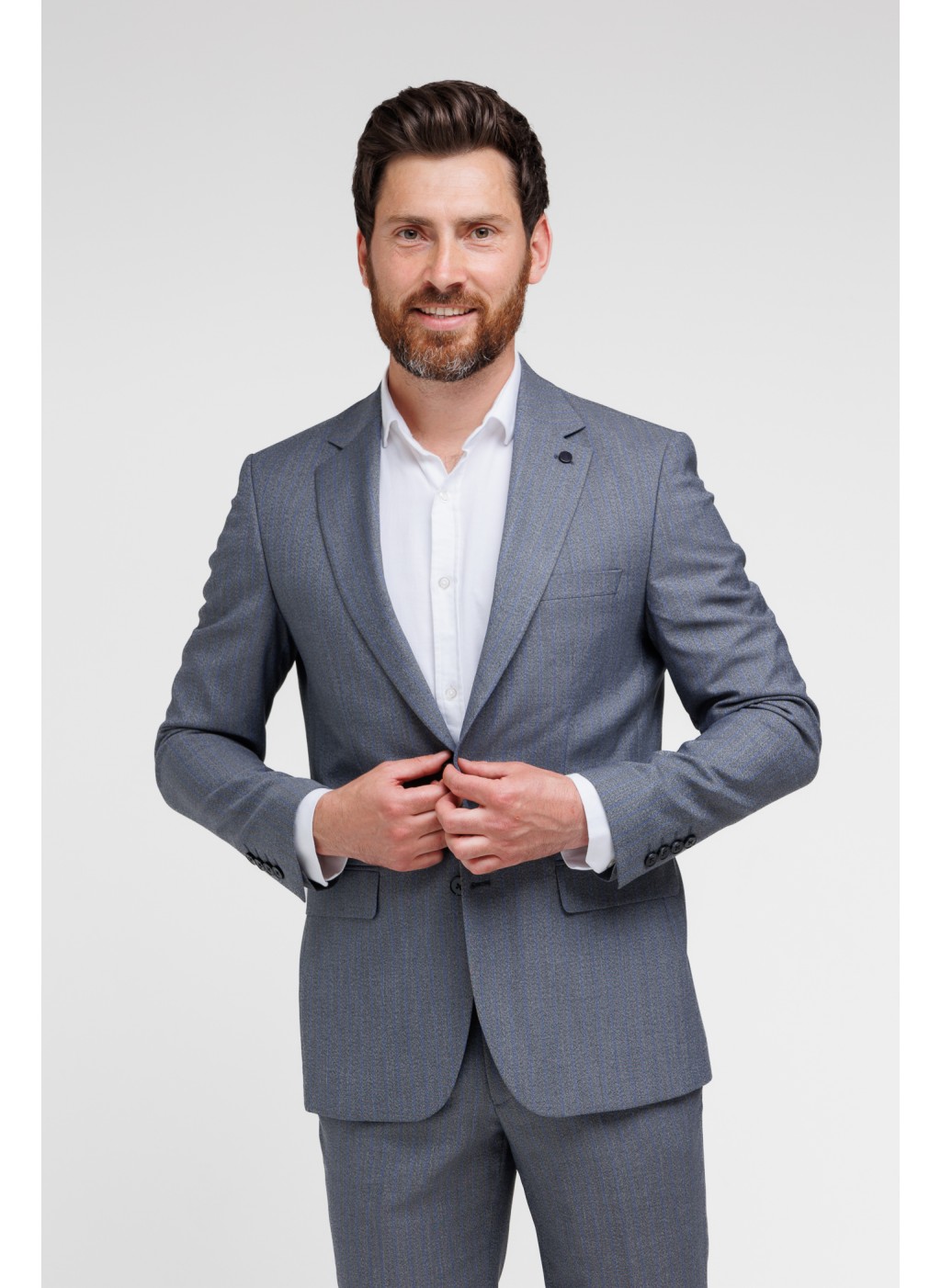 Костюм чоловічий сірий в голубу смужку