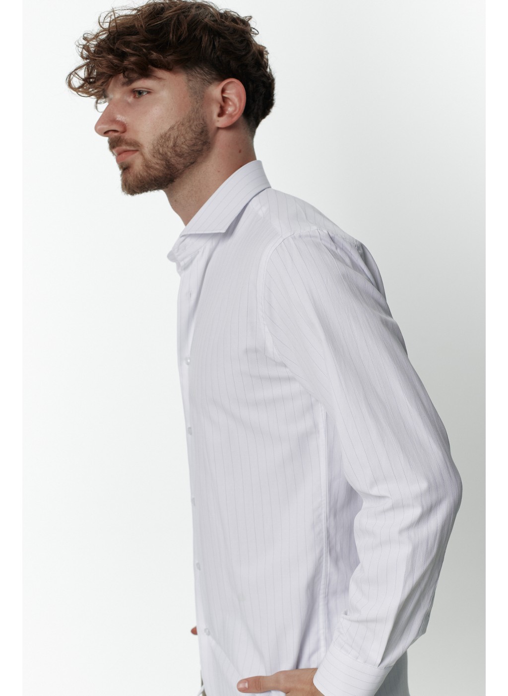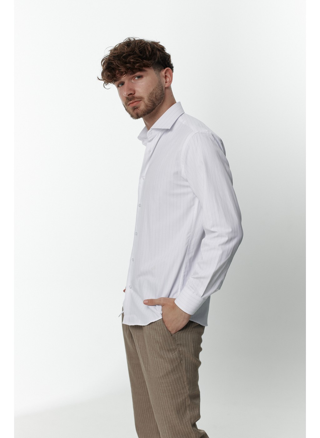 Сорочка чоловіча біла в синю смужку